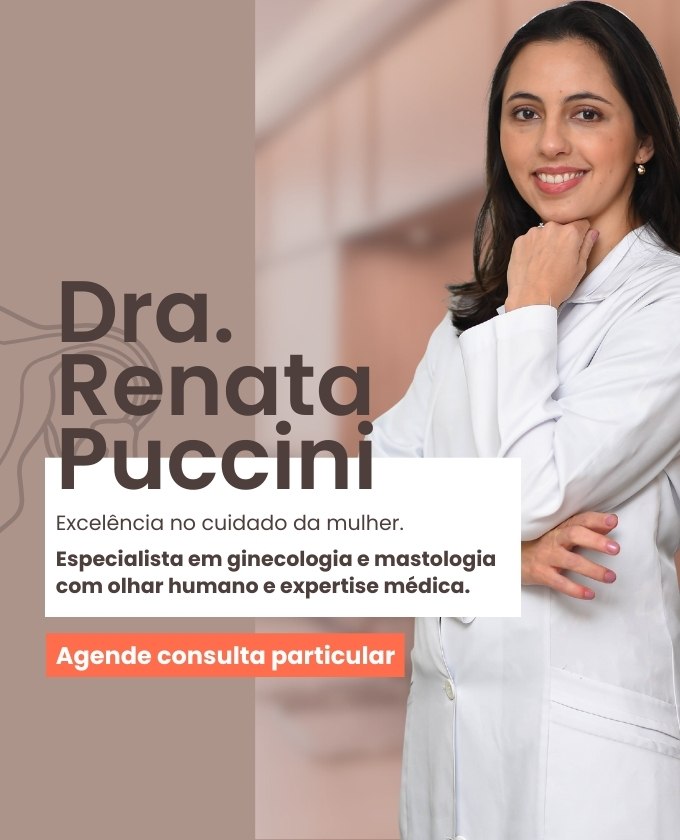 Na área da Ginecologia, a Dra. Renata Puccini oferece atendimento completo e personalizado, com consulta de rotina, exame físico detalhado e orientação sobre métodos contraceptivos, infecções sexualmente transmissíveis (ISTs), sexualidade e outros temas importantes da saúde da mulher. Durante as consultas, realiza a coleta de exames ginecológicos, como o Papanicolau e o teste de HPV-DNA, além de ser possível a inserção de implante contraceptivo e dispositivo intrauterino (DIU). Também realiza o diagnóstico e o tratamento de lesões genitais, como verrugas causadas por HPV e herpes, candidíase e outros corrimentos vaginais.